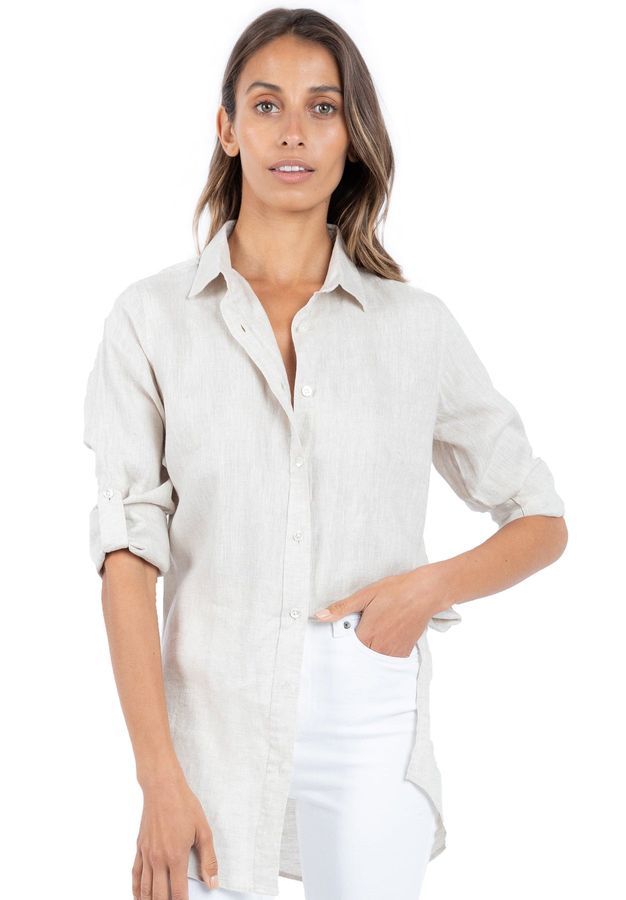 This comfortable airy tunic is a modern take on the classic shirt-dress. Keeping you cool and right on trend, this pure linen treat will become a favourite go to in your wardrobe.
