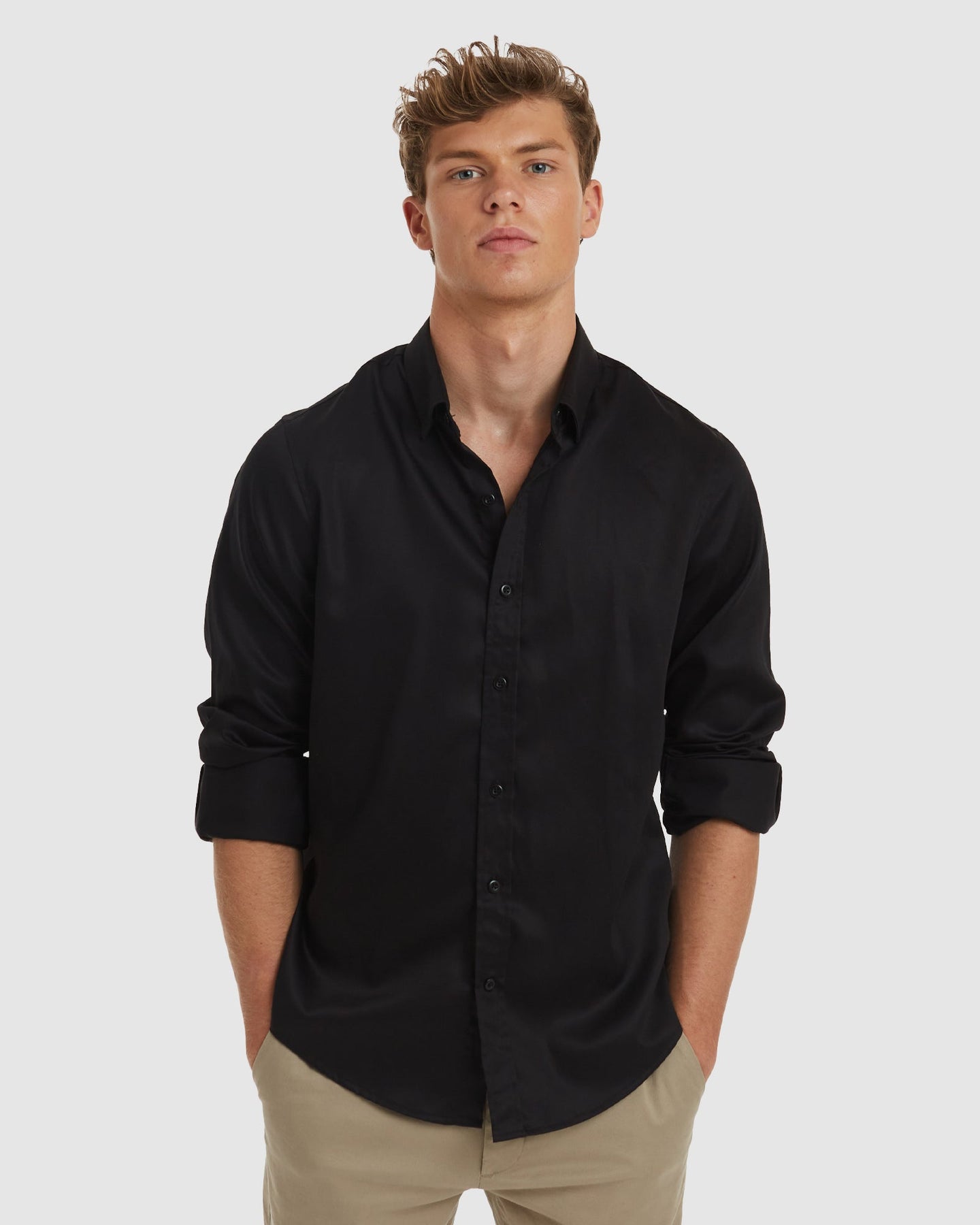 This cotton hidden button-down Long-Sleeved Shirt for men is easy-wearing anywhere. Designed for the office, but with performance features that make it the go-to choice for events and night outs.