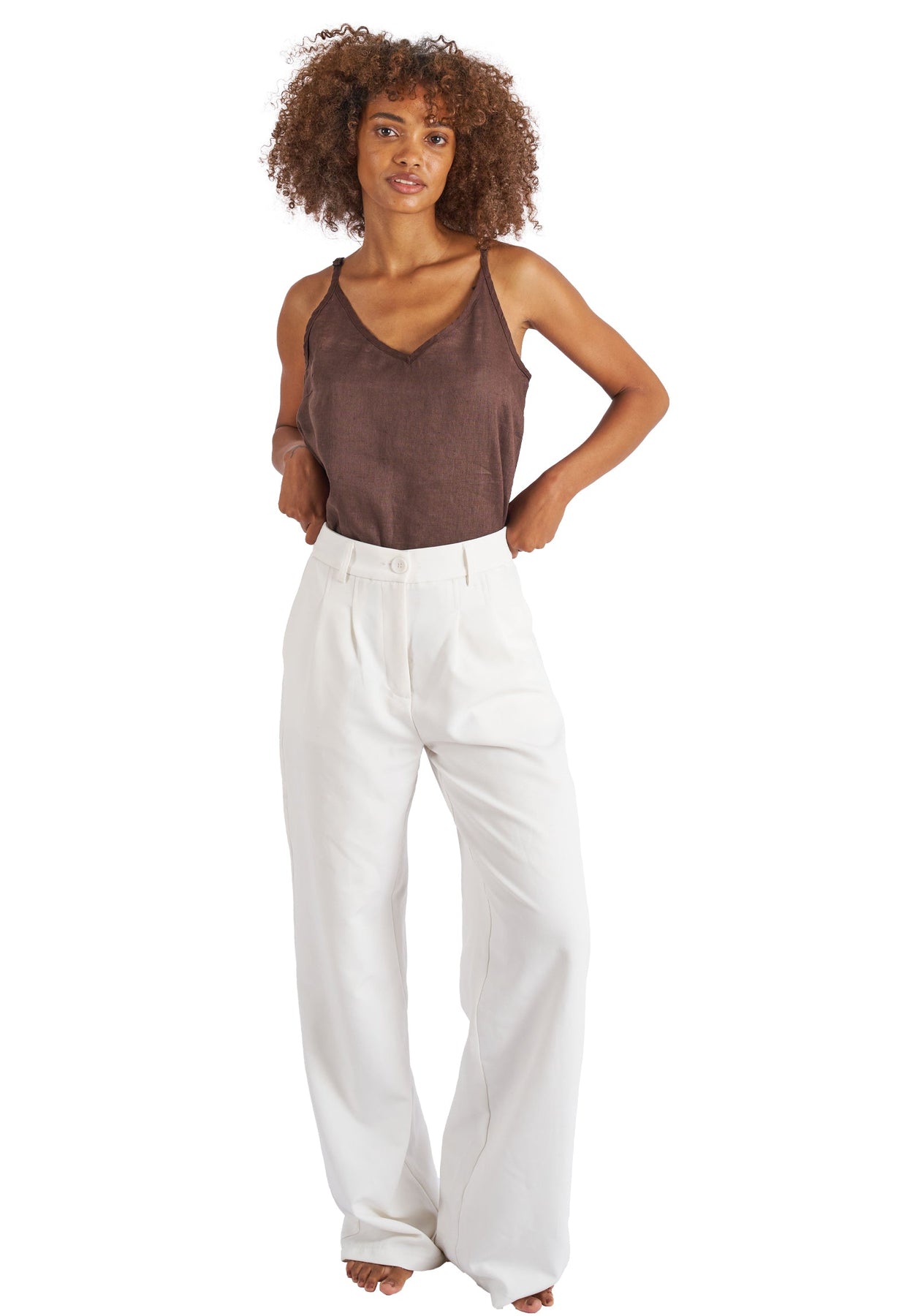 Woven in a pure French linen, this Natural colour pure linen Camisole is both breezy and versatile. Wear it solo in the hotter months or under/over a shirt, tops or jacket. Great in the office under a blazer.  Pair it with jeans and heels for a dinner out; pop a cami over a fitted white tee if you prefer to layer your looks.