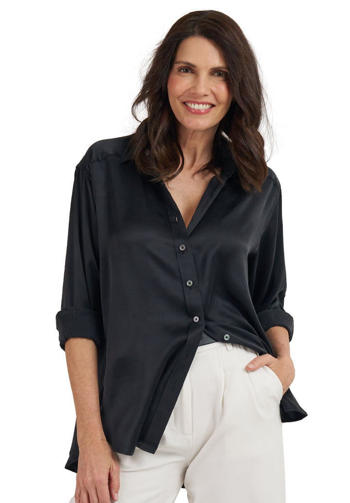 Soie Black Oversized 100% Silk Shirt