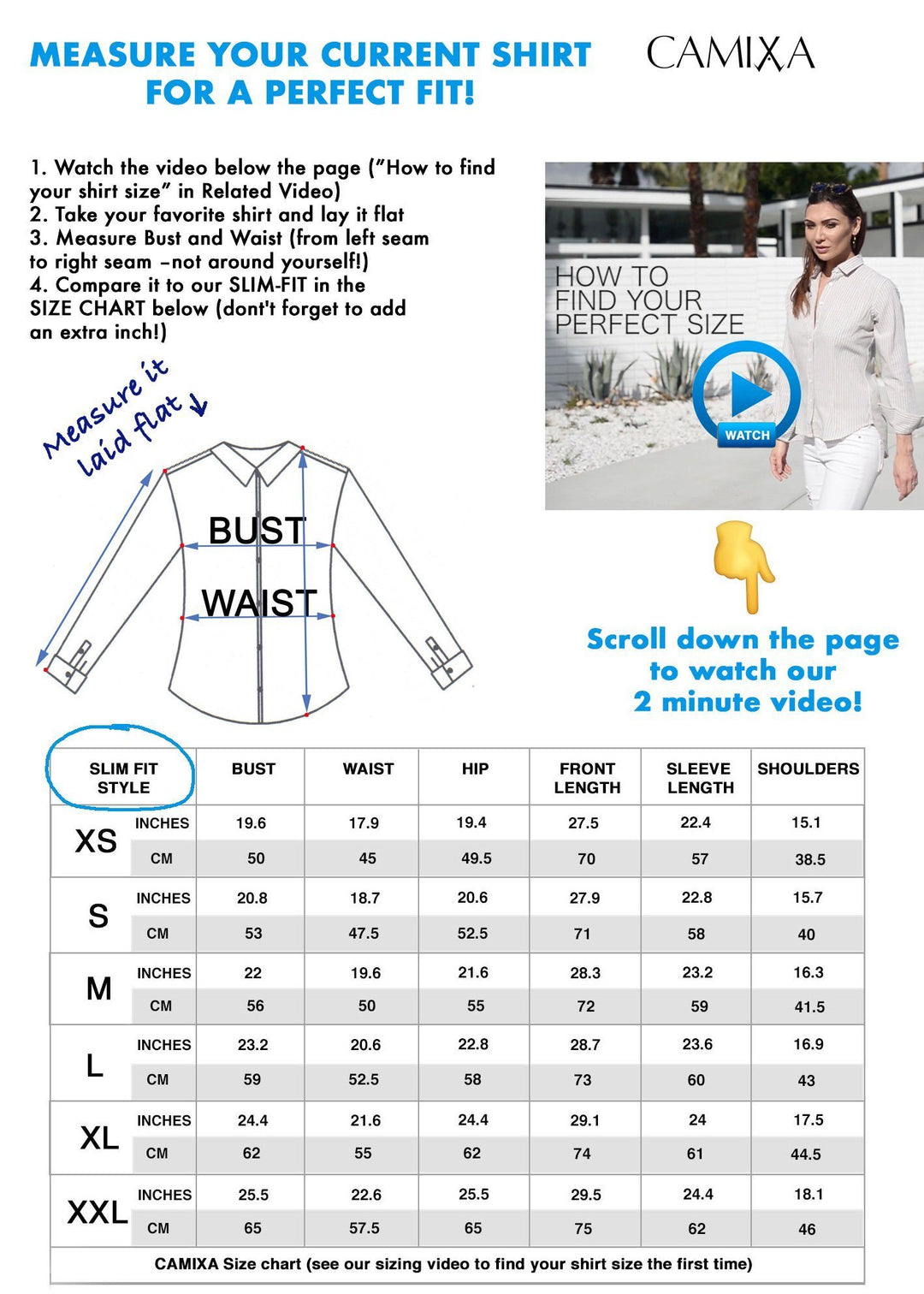 The Slim-Fit Style cut shirt  (the Lina and the RINA shirts) is slim cut, slightly tailored, it features front darts and a feminine fit.