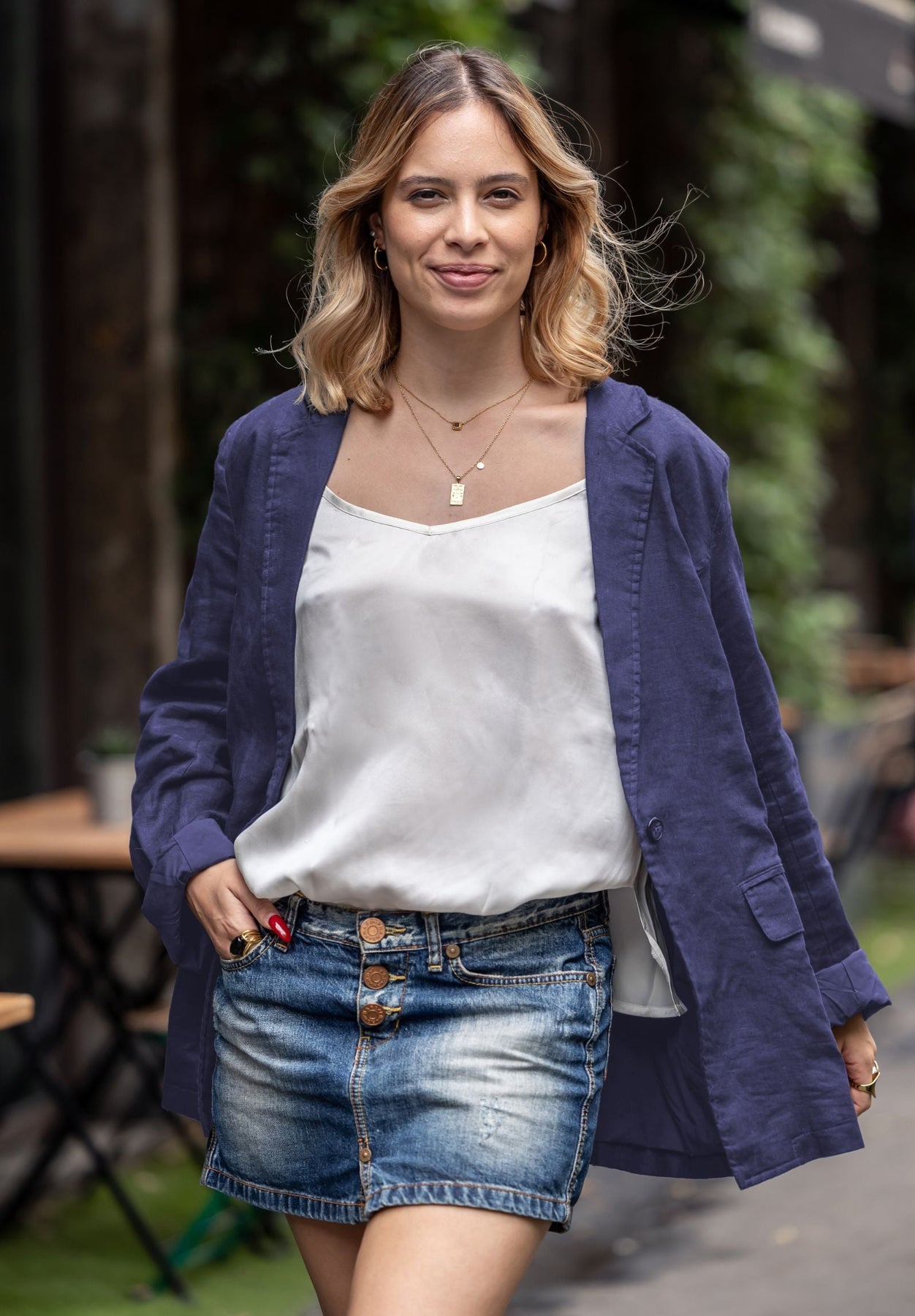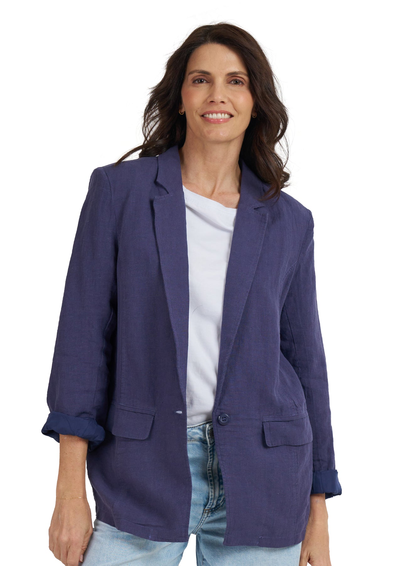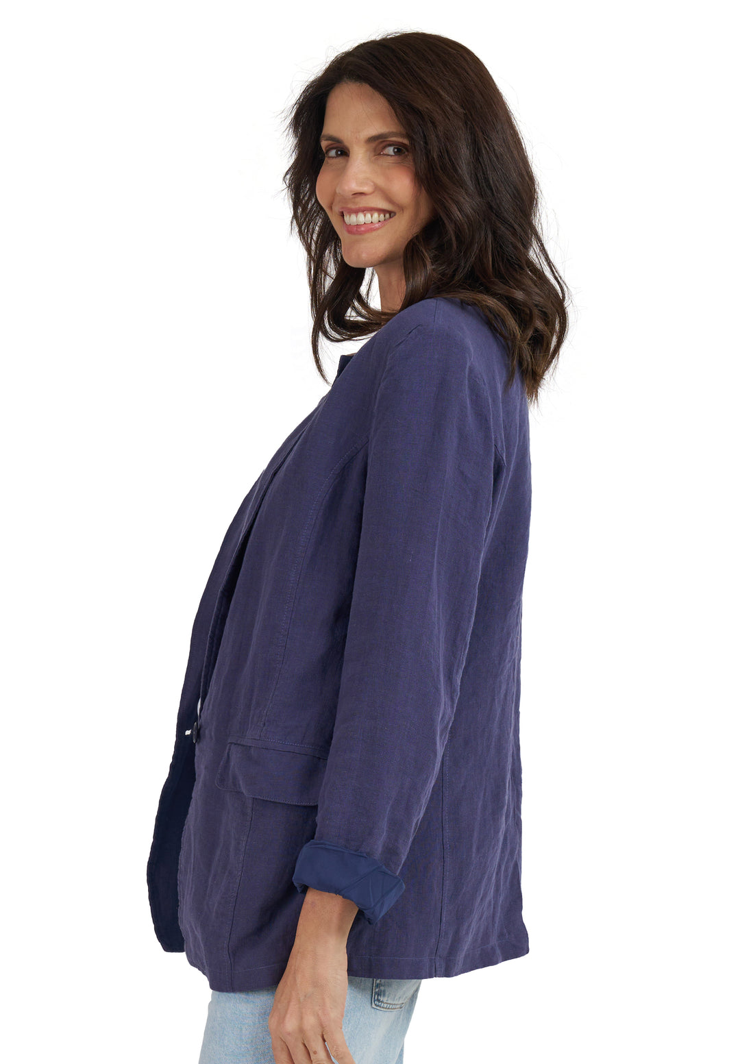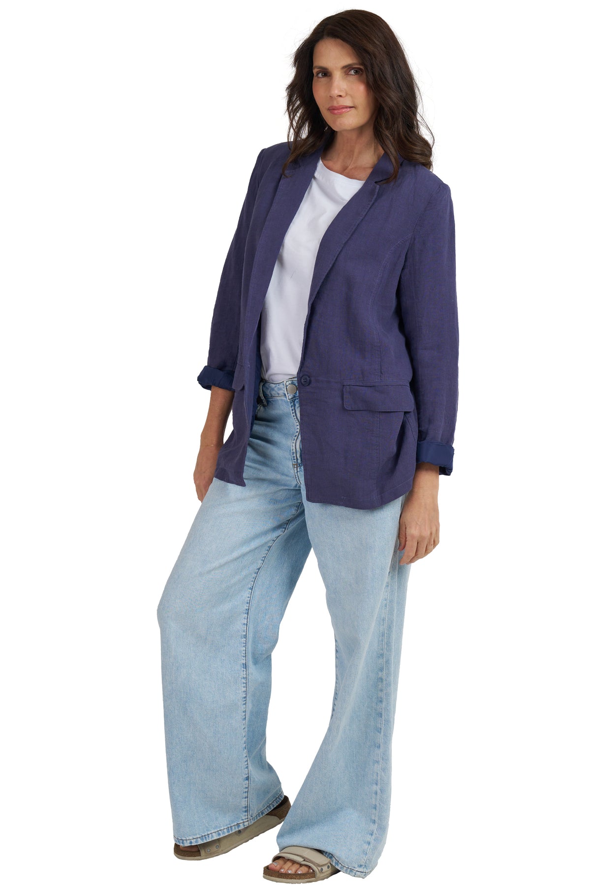 Taking the classic blazer to the next level, this timeless Oversize JACKIE jacket in pure linen is the perfect warm to cool weather staple. It combines the classic detailing and style of a tailored blazer with the comfort and relaxed character of linen, offering the best of both worlds. The softness of lining adds a more structured feel, blurring the line between smart and casual.